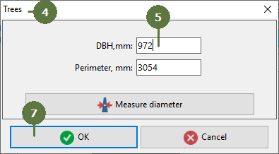 Note: You can also enter the perimeter into the “Perimeter” edit box. Field-Map automatically calculates the diameter from this. |