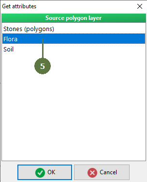 This is special type of attaching attribute function, available only for polygonal layers. It transfers the value from one (source) polygonal layer to another (target) polygonal layer. First, the intersection of each source layer polygon with borders of target layer polygons is calculated. Subsequently, the respective attribute value of the largest source polygon inside target polygon (or source polygon with the largest area inside target polygon) is assigned to target layer attribute table. Be aware that the function does not take into account possible higher total extend of more small polygons of the same category comparing the largest polygon.