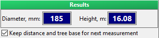 The number of ticks covering tree stem at the place of diameter measurement together with information on used zoom factor are required. It is possible to calculate the diameter in millimeters and the horizontal distance to the stem center upon receiving of data on: