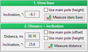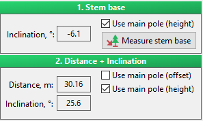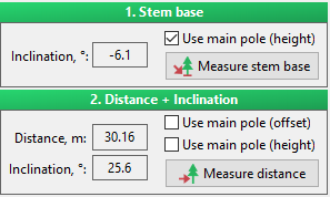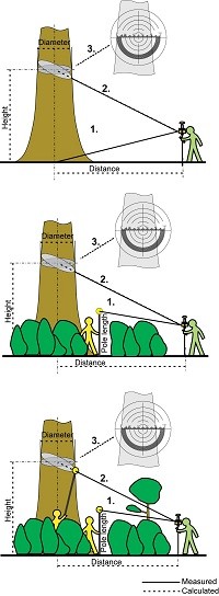 With such information it is possible to calculate other diameters simply based on the inclination and reading of spotting scope scale bar. Measurement of the first diameter is necessary to get information on the horizontal distance to the stem center. In most cases the first diameter can be measured at the required place and the whole measurement procedure is finished.