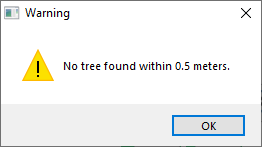 When performing repeated measurements of trees or point entities it may be useful to be able to select entities by laser. If there is no entity in the vicinity of current position of the measurement pole you are aiming at, you will receive warning message.