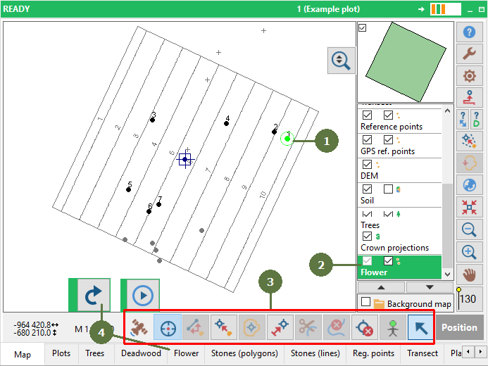 - Field-Map Data Collector maintains real-time relations between the map and the attribute table. Selecting an entity on the map will also select the appropriate record in attribute table and vice versa.