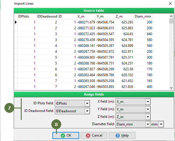 X, Y, Z co-ordinates of all break points on the deadwood center line. If you are importing data from one Field-Map project to another (or from one plot to another within the same project) you could use the inbuilt function for export. Field-Map Project Manager exports deadwood data into a special table Deadwood_Details.
