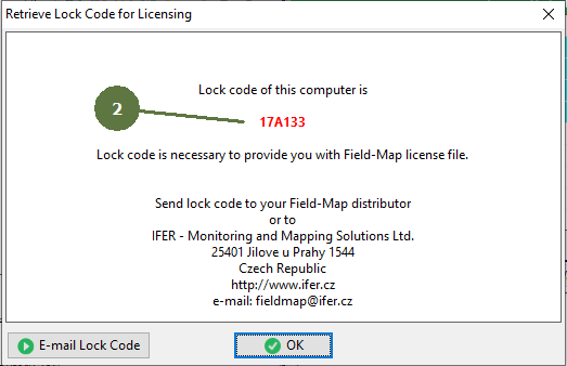 The software licence is limited to one particular computer. Another option for licensing is using a hardware key. Lock code Before retrieving the lock code for licensing, make sure that the configuration of the computer (such as the name of the computer) is the same as the one which you will use with the full version of Field-Map. Unregistered Field-Map Demo version has a full functionality for 3 months, but the number of entities which can be handled is limited (max 7 points, 3 lines, etc.). Demo version does not support an electronic equipment. |
