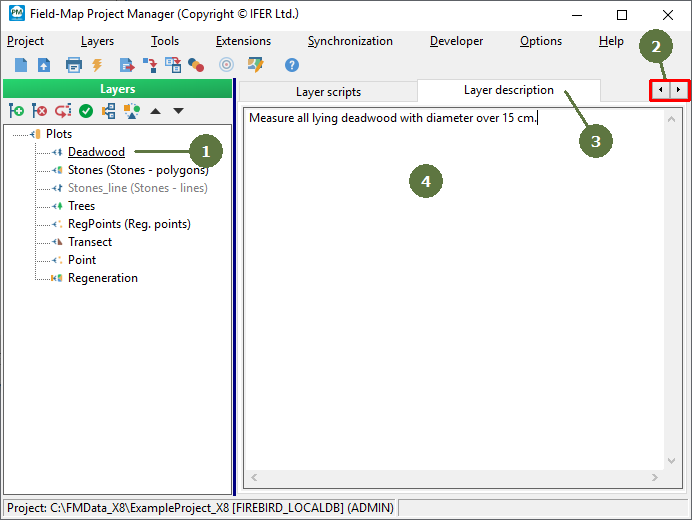 There is a possibility to describe a layer in words; this may be useful to describe a methodology guidelines for instance. This description is printed out when the database structure is printed. |