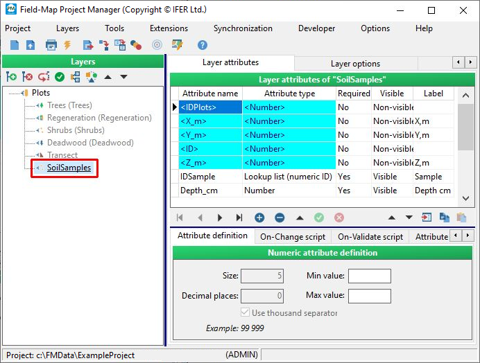 The below example shows when it is appropriate to disable a layer. A field team may consist of those doing a tree measurements and those doing a soil sampling. Both will be using the same project, but you can disable layers unnecessary for a particular group so that these layers will not appear on the Field-Map Data Collector form.