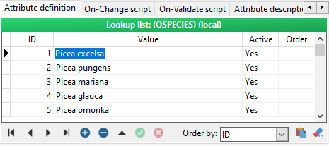 Numeric lookup lists (where ID may only consist of numbers) are mostly used for ordinal scale attributes such as “Decomposition degree”, “Damage level” etc., but they are also useful if you need to have a long list of items where an abbreviation such as “Species” would not work.