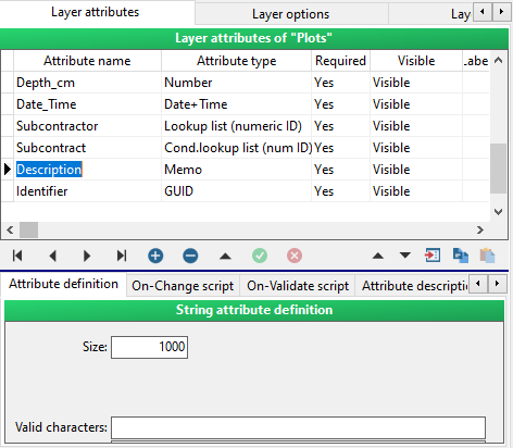 Memo is an attribute type which can hold up to 64 000 characters. It uses more memory than a string attribute type. Separate window opens when editing attribute of this type. If there is description or memo as part of attribute name a wide box is shown at the top of plot form.