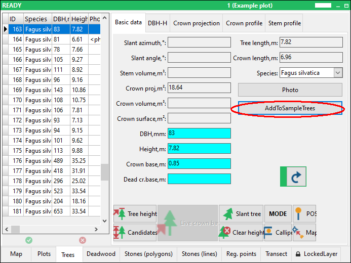 When the measurement is finished the calculated basal area is stored in the database.