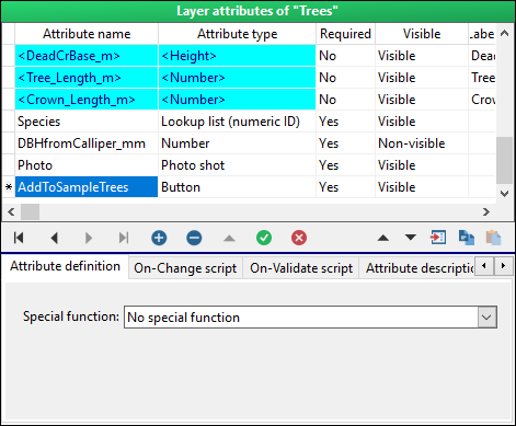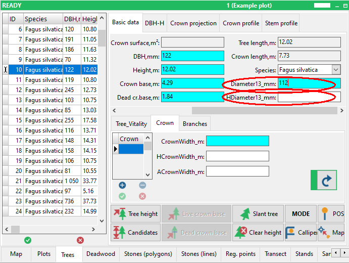 If you use a laser and an optical device for remote diameter measurement and need to record the exact height of the diameter measurement, add another attribute named the same as the diameter attribute starting with the letter H, for example “HDiameter”. It will automatically record the height value coming from the laser together with the diameter value.