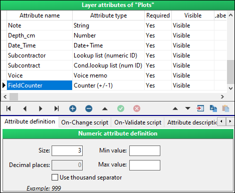 Counter is an attribute type that can be handy if a user needs to change an attribute value by a step of +1 or –1. It can be done easily by clicking the arrows.