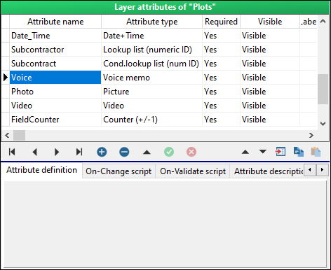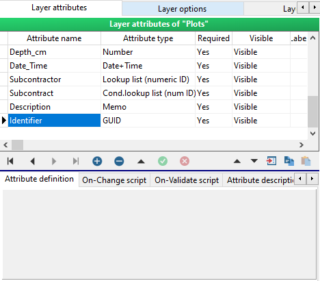 Button attribute can be used to run a user defined script. In Data Collector it is represented as a button with a label. You can prepare e.g. on-change script for volume calculation and the script is executed when you click the button (see the chapter “Field-Map scripting”).