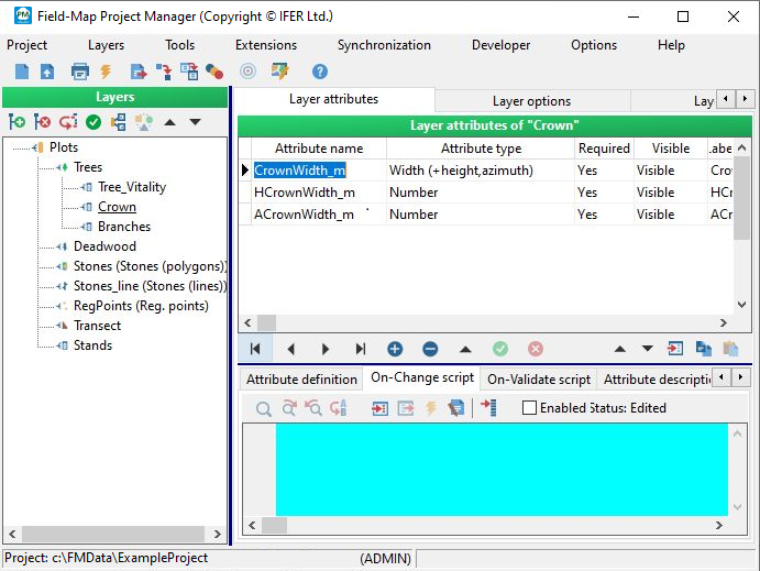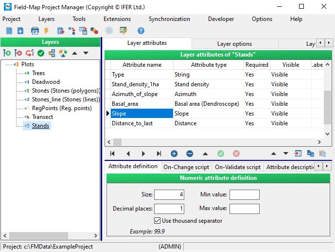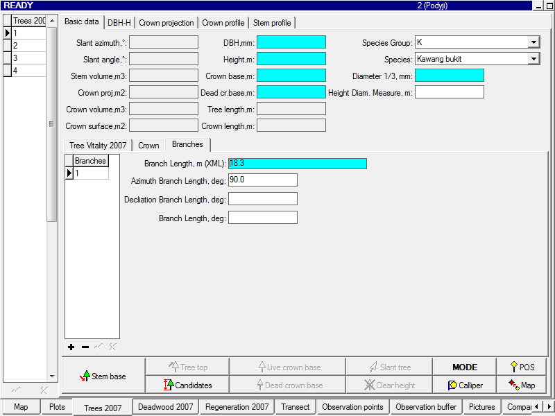 You can prepare an attribute of type Memo with the same name as the attribute for stand density but with the suffix XML (e.g., when StandDensity is the main attribute of type Stand density, where the calculated density will be stored, then StandDensityXML is the attribute of type Memo). If such attribute is available, Field-Map will automatically store to it in XML format all the data which have been set and measured. This information can be used in associated scripts or further data processing.
