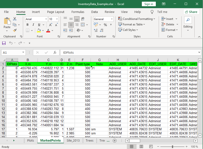 Following examples demonstrate how the exported data of a Field-Map project looks like when exported to MS Access database, MS Excel table or XML exchange format.
