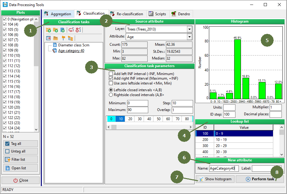 It is possible to set the range and the margins of intervals. Project Manager automatically shows the classes. - Lookup list