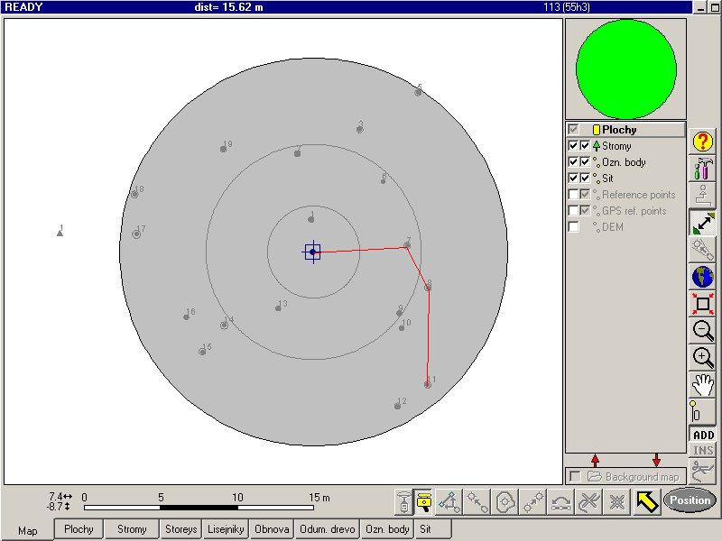 Lines or even multi-segment lines can also be drawn over the map to measure the distances. The distance appears in the status line.