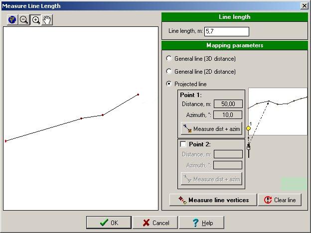 Advance attribute Line Length can be used for branch length measurement. Line length is an integer number and it represents the length of the line. It supports: a general line (two dimensional or three dimensional distance) and a projected line (e.g. length of branches). When a projected line is measured the user can measure line length using one or two points. These points can be on a random place on/under the line. The precision is better if two points are used.